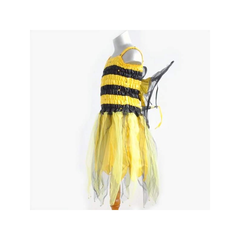 Bumble Bee Fairy Dress with Wire Wings and Stinger, Lined Multi Layered Tulle Skirt Highlighted with Sequins, Bells & Beads