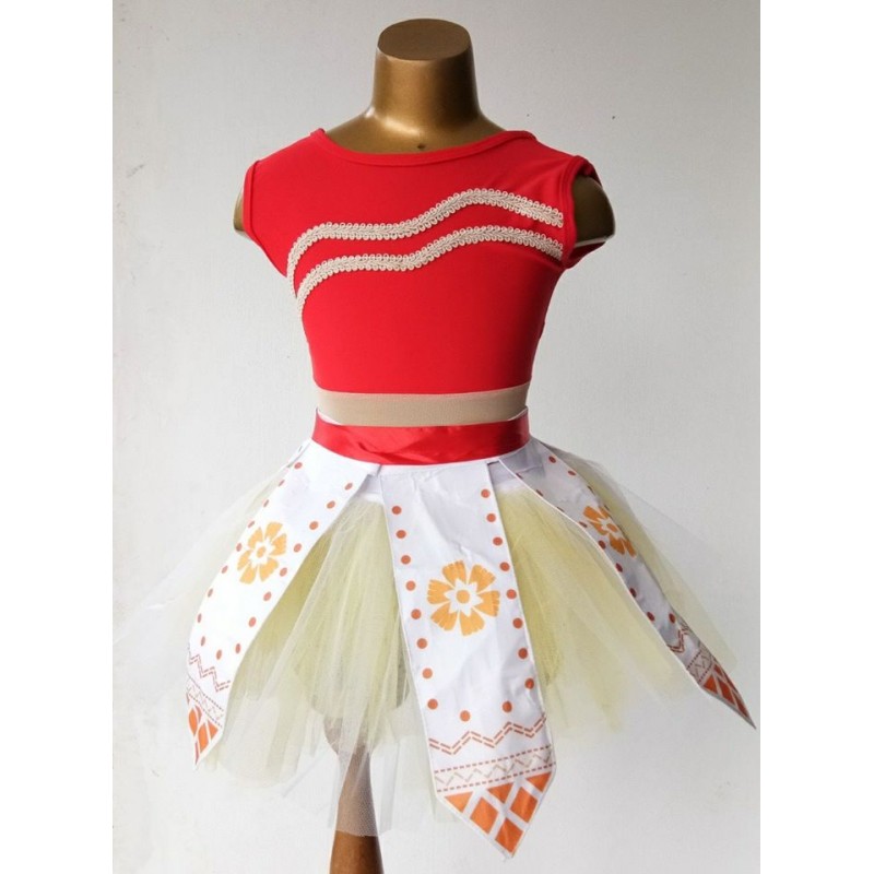 Moana in Tutu Style. Red leotard with white-yellow tutu skirt and Moana style sharp petals, highlighted with lace